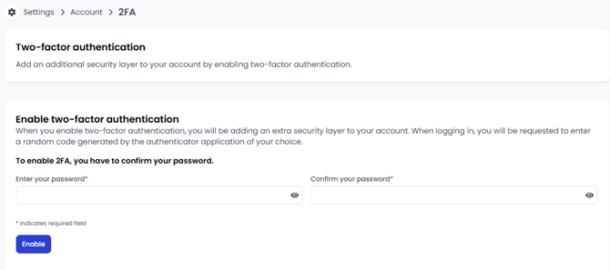 - Once logged in using SSO, you'll be able to use your credentials to enable 2FA.