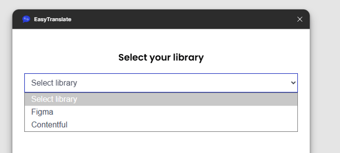 The EasyTranslate plugin is available in the Figma Marketplace. Simply click on Open in… to be redirected to your team library where you are prompted to run the installation.