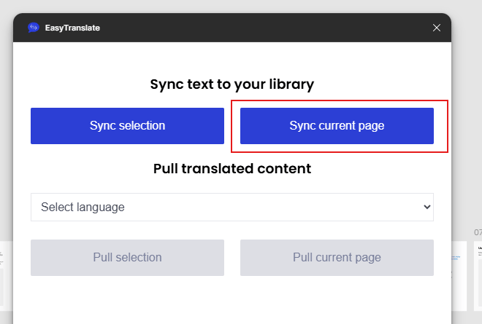 Step 3: Bulk sync your text to your string library from the current page. You don't need to select any text to send it to EasyTranslate.