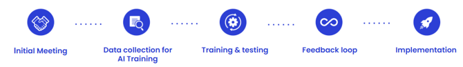 We allow for quick onboarding for most common languages and domains to get you started. If you want a highly customized setup that allows for handling of very complex requirements, we also offer an onboarding process to tailor the system to your specific needs, which looks like this: