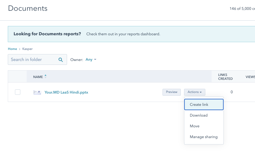 Go to Sales->Documents in Hubspot and upload the required document (organise in your own folder to keep tidy).