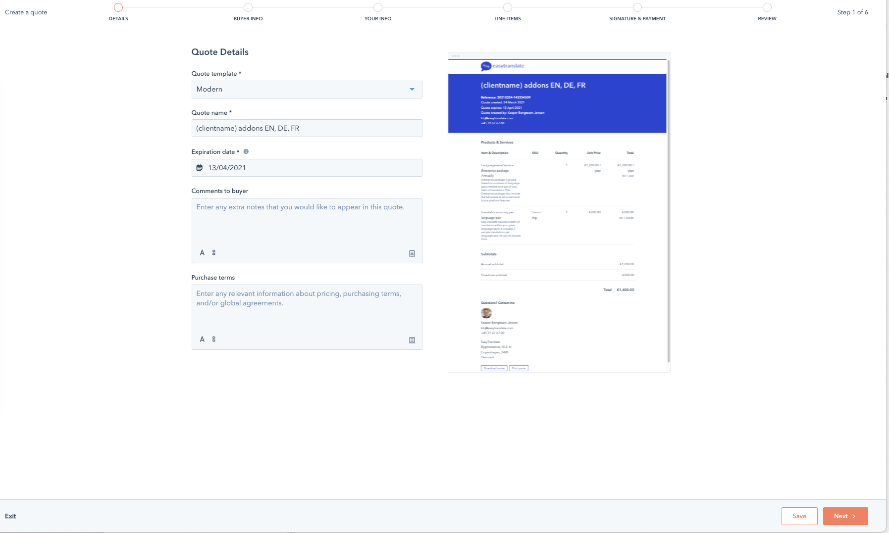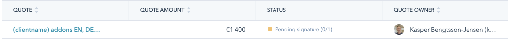 Deal Name: Client name + short description of the content of the deal (e.g. new languages)
