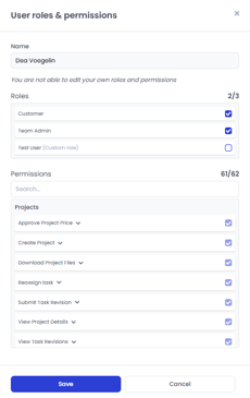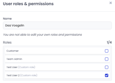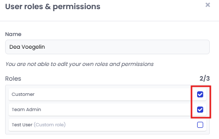 - You are not able to edit your own role and permissions
